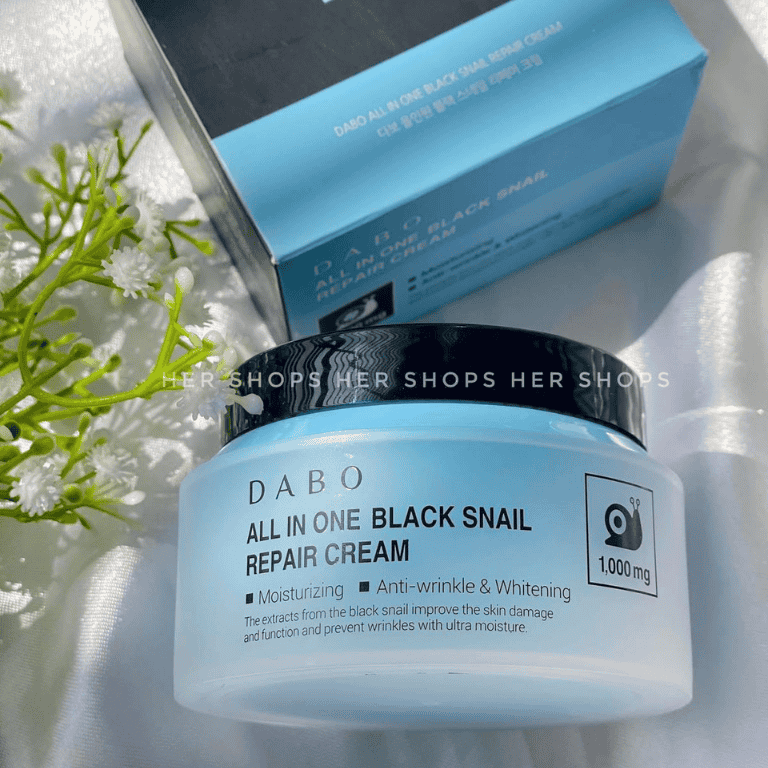 Dabo All In One Black Snail Repair Cream is a Korean skincare cream enriched with black snail mucin to repair, hydrate, and restore skin. Its all-in-one formula improves elasticity, reduces fine lines, and leaves skin smooth, firm, and radiant.